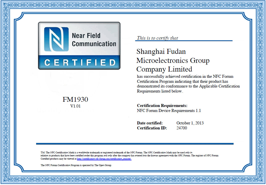 公司設(shè)計(jì)的NFC控制芯片F(xiàn)M1930,10月1日獲國(guó)際組織NFC論壇的認(rèn)證。這是國(guó)內(nèi)首款通過(guò)NFC論壇認(rèn)證的NFC控制芯片。