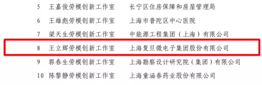 復旦微獲上海市“勞模創(chuàng)新工作室”,“先進創(chuàng)新工作室”