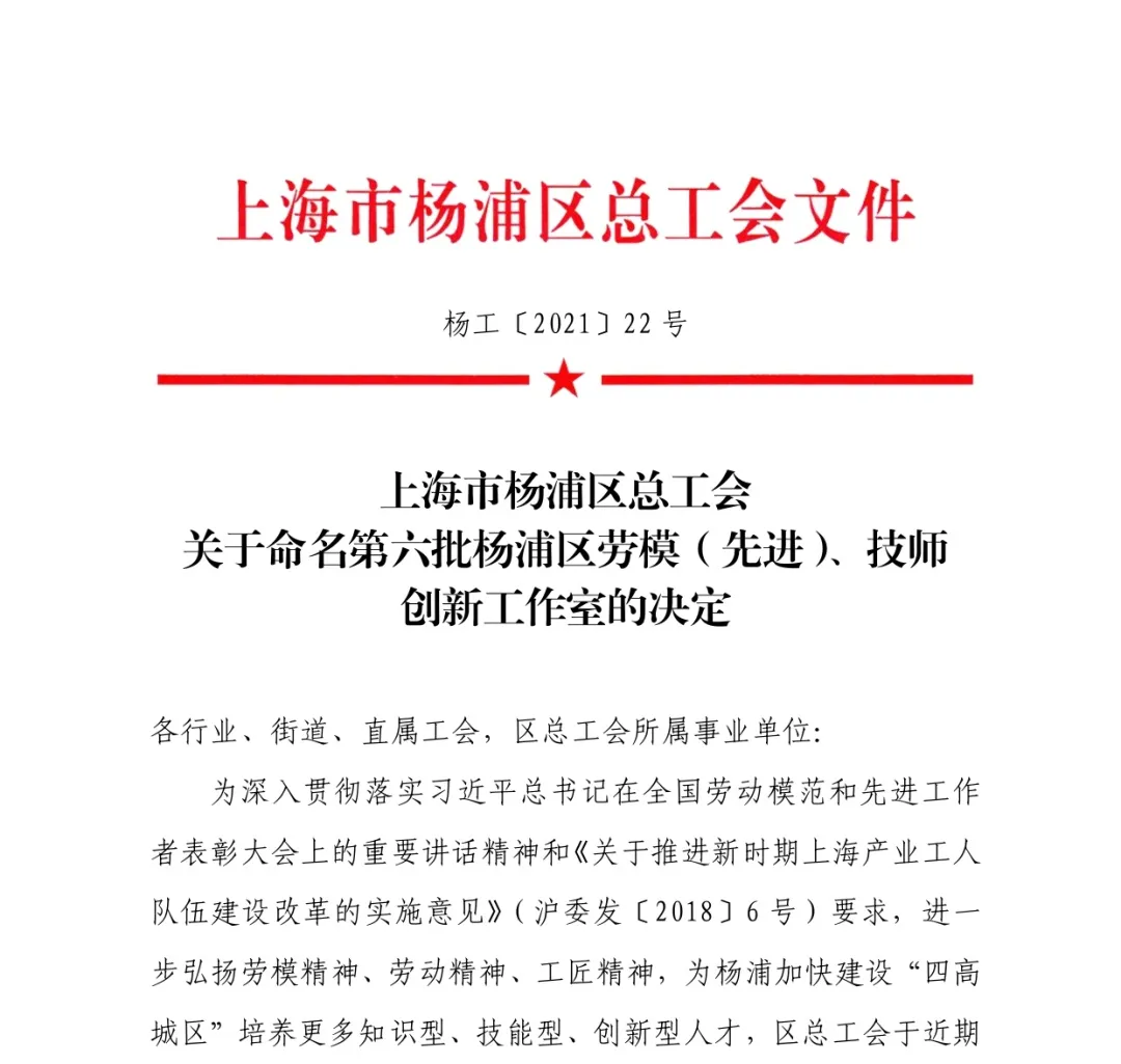 楊浦區(qū)勞模創(chuàng)新工作室揭牌